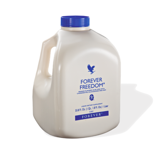 Aloe vera with added glucosamine, chondroitin and MSM. • 90% pure inner leaf aloe vera • Orange flavoured • Added glucosamine, chondroitin and MSM Wake up and get your day moving with this refreshing orange-flavoured aloe gel. Forever Freedom contains all the benefits of our plain gel but with added glucosamine, chondroitin and MSM – popular with those who lead an active lifestyle.